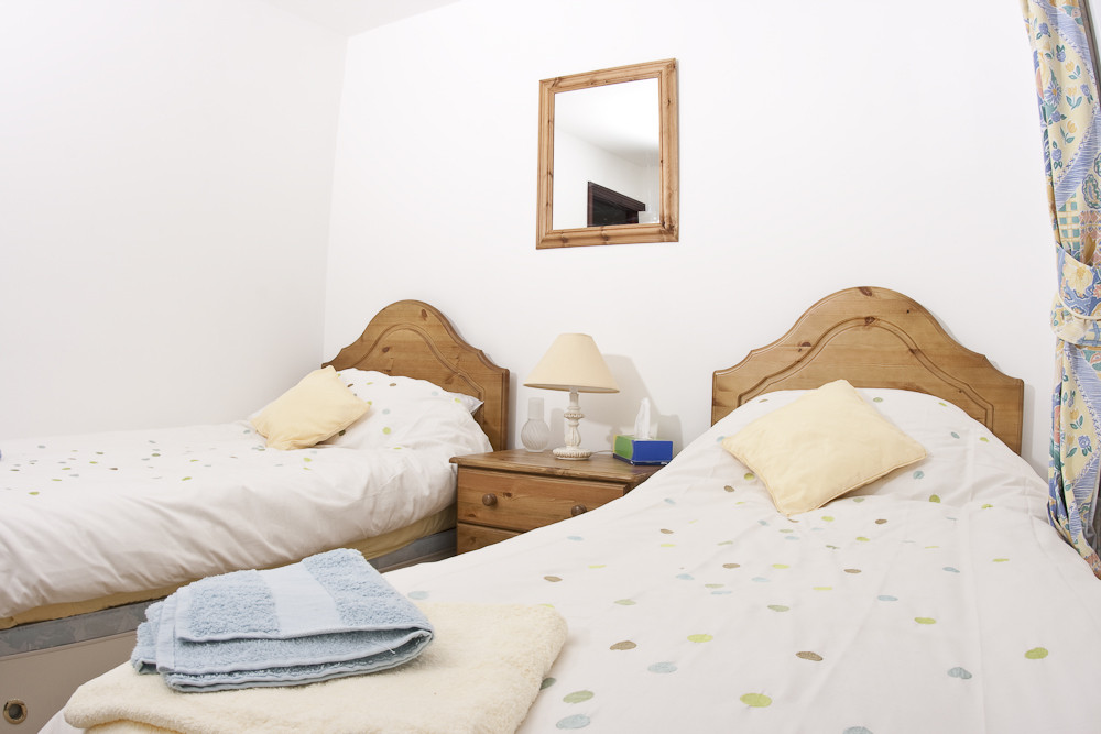1A has two bedrooms,( one double one twin) one bathroom, kitchen and living room . Cot available on request.